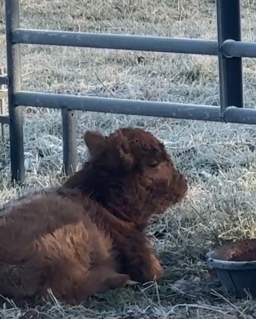 Our first calf born to Root to Rise Farm to our OG matriarch, Aoife. He is hearty, sturdy, and stoic like a true Scotsman (but also a big softie who loves treats and scratches).