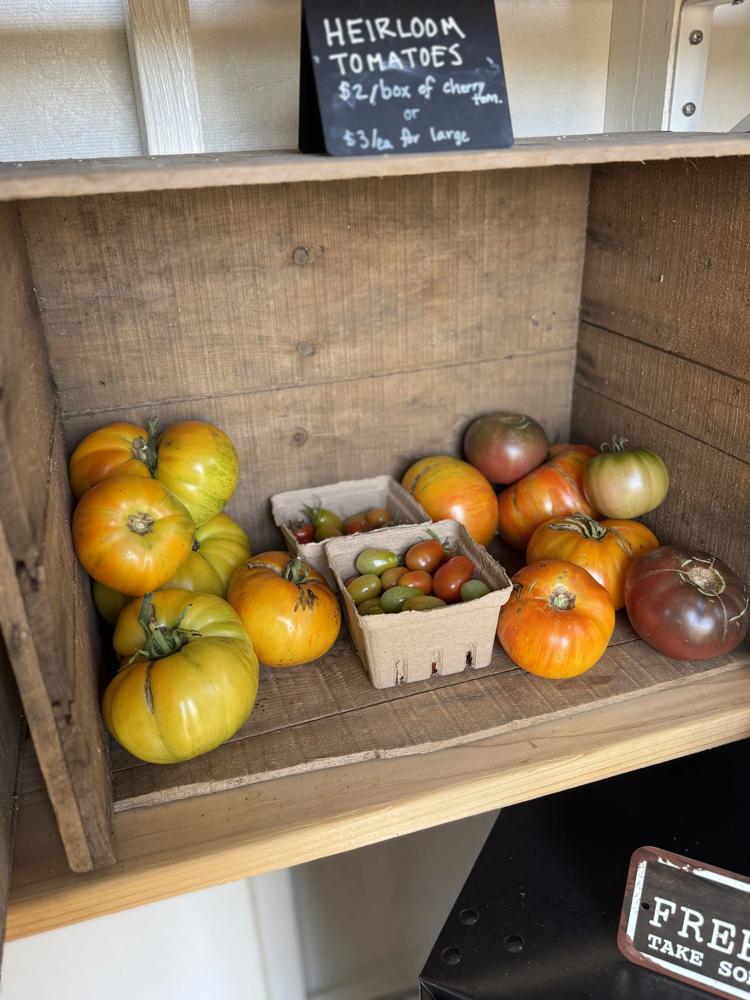Things are inevitably slowing down, but be sure to swing through our farmstand, as Lizzie harvests and stocks veg, cut flowers, and her sourdough baking every weekend.